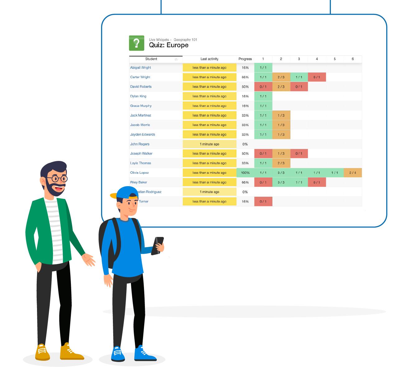 Monitor your students' progress in real-time while they're working on BookWidgets assignments, at home or in your classroom.