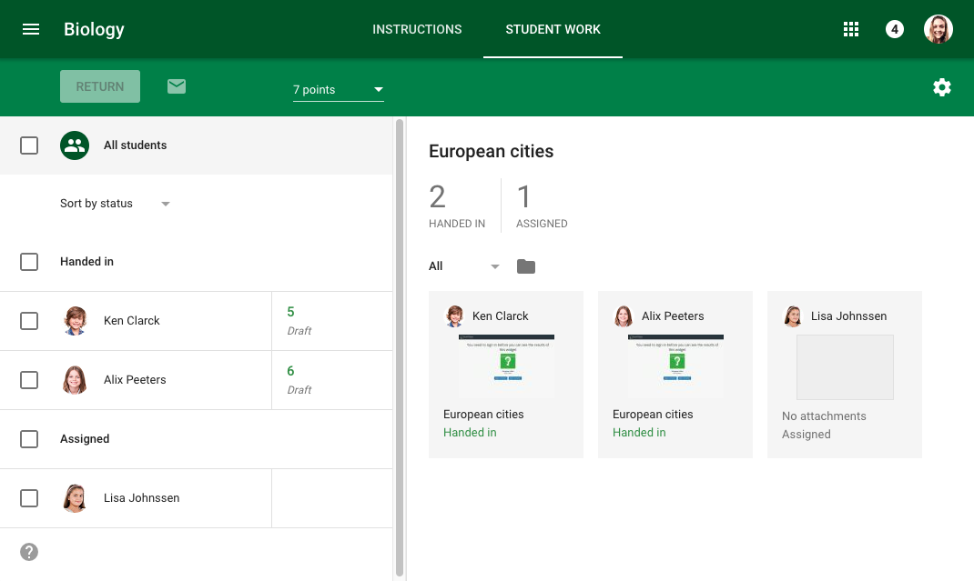 When you're finished, return the graded work and feedback with a click. The grades automatically make their way into your Google Classroom gradebook.