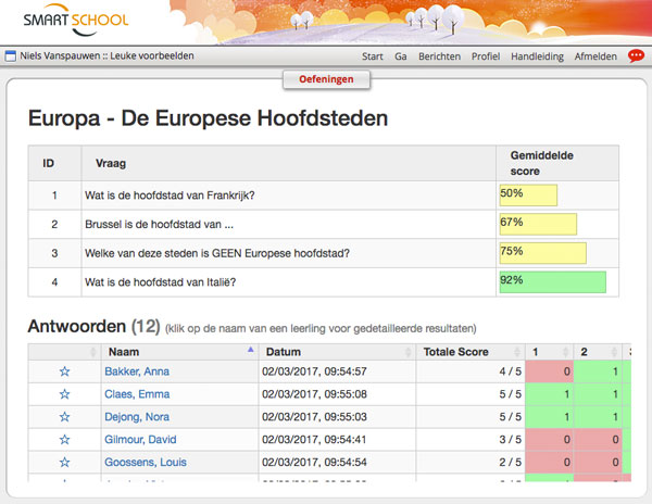 Volg het werk en de evolutie van je leerlingen over tijd. Alle werkjes worden automatisch verbeterd, maar jij kan natuurlijk bijsturen waar nodig, bijvoorbeeld om rekening te houden met leerlingen met dyslexie.