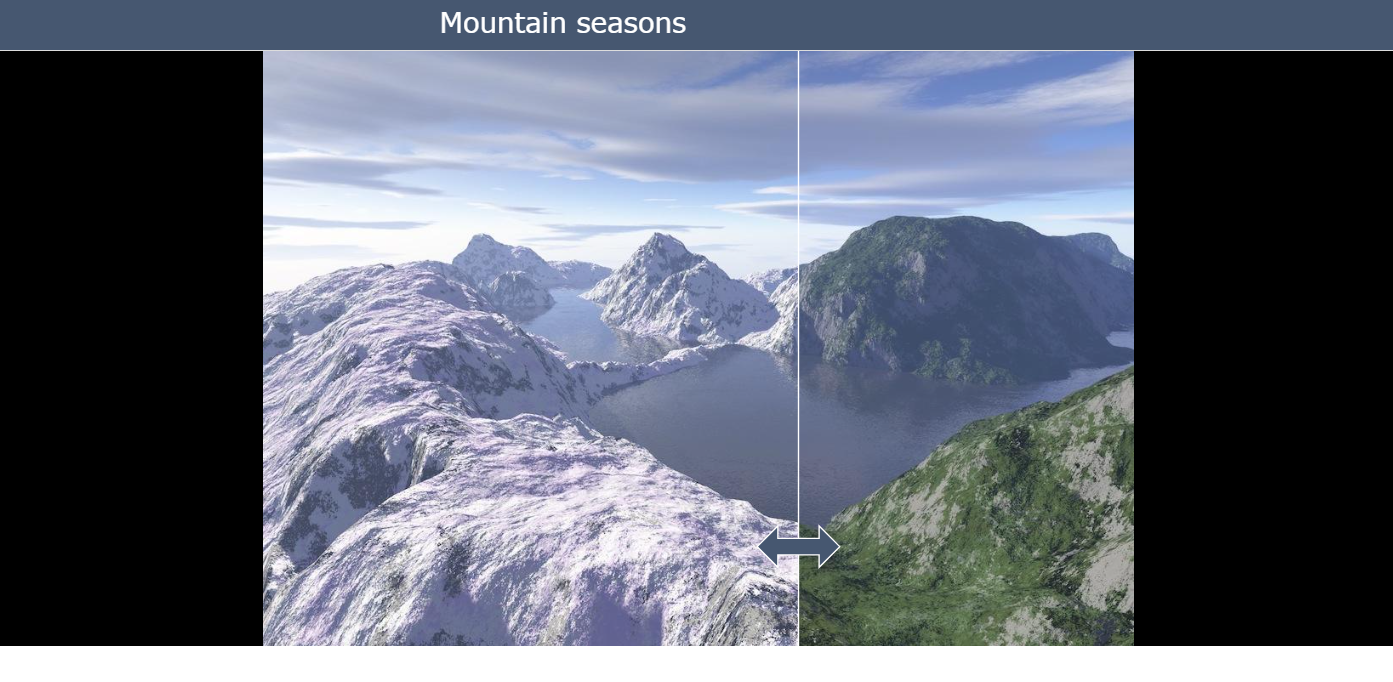 With the Before/After widget, your students can compare two pictures with each other. Move the slider to reveal more of one or the other picture, or set it to blend the pictures.