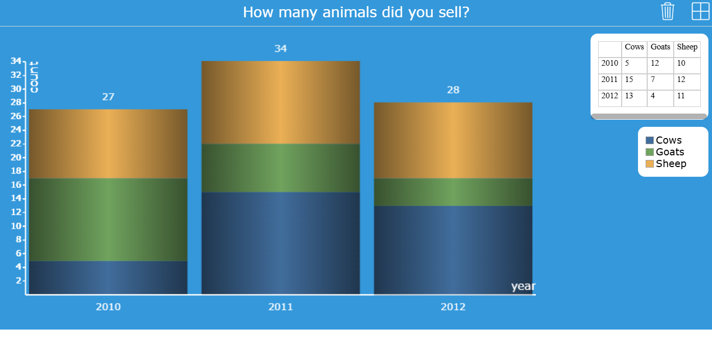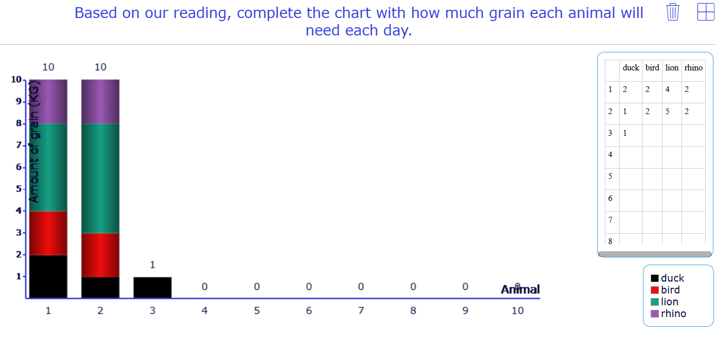 Students can fill in numerical data into a table the teacher defines, and a stacked bar chart will automatically update accordingly.
