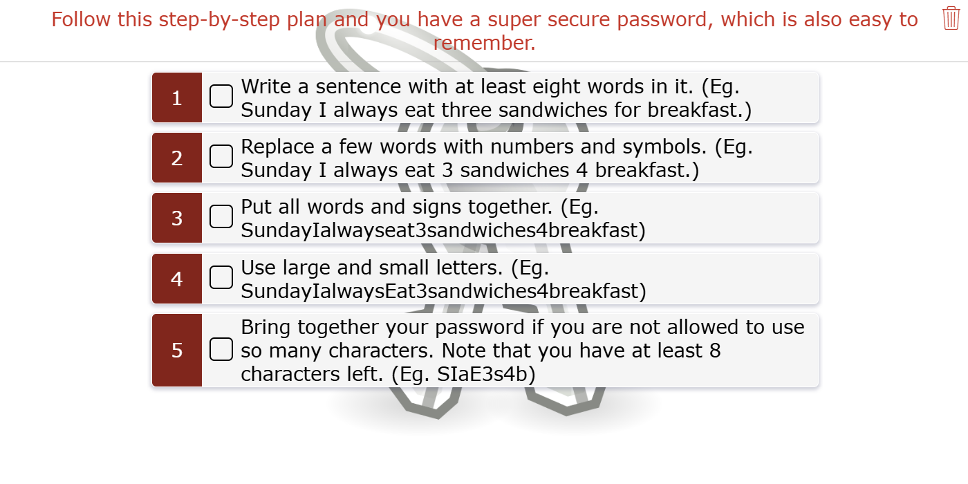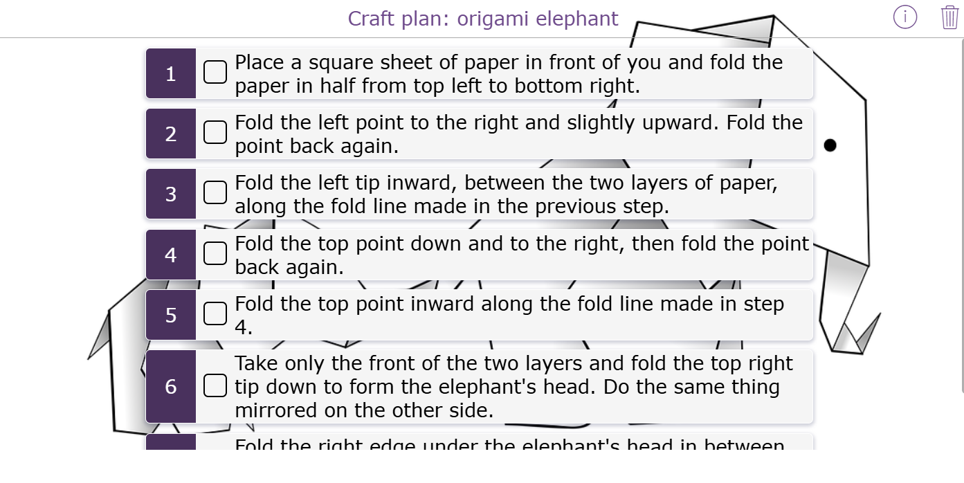 Create a simple checklist useful to provide step-by-step guides or to explain processes.
