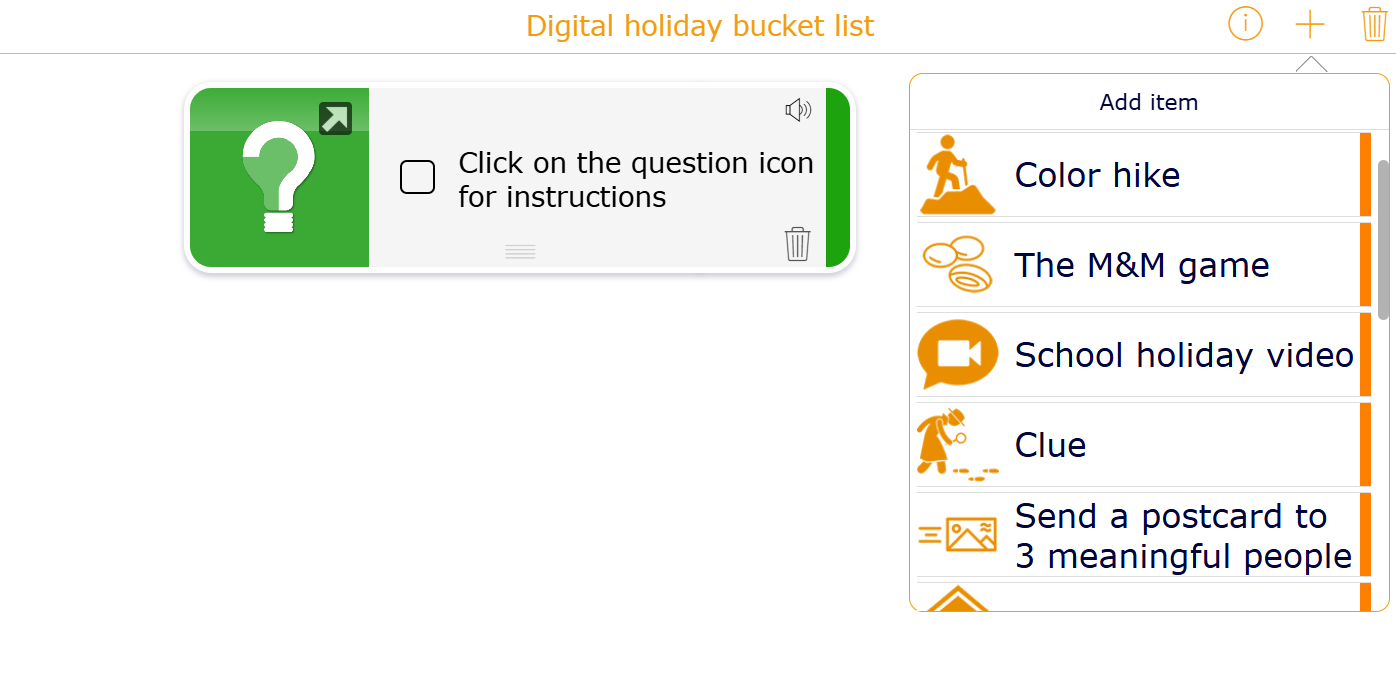 Plan engaging tasks for your students in and outside the classroom. Whether it’s fun holiday activities or structured school assignments, this flexible planner helps you organize everything in one place. Customize the content to match your needs and give students a clear overview of what they can do.